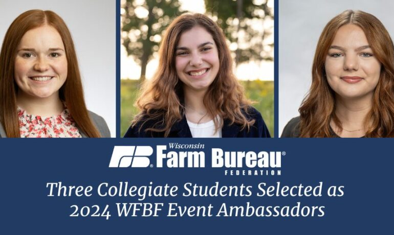 Three collegiate students have been selected as Wisconsin Farm Bureau’s Event Ambassadors. In the second year of this program, Sierra Bakke, Emi McCarville and Lashawna Vogel will use digital platforms […]